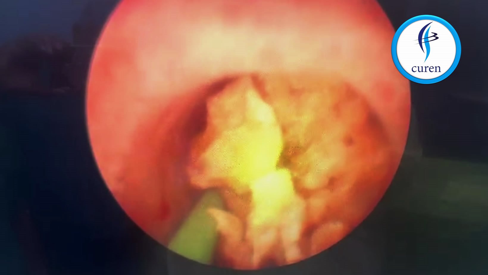 En este video puede apreciarse la estracción endoscopica de un cálculo enclavado en el úreter.